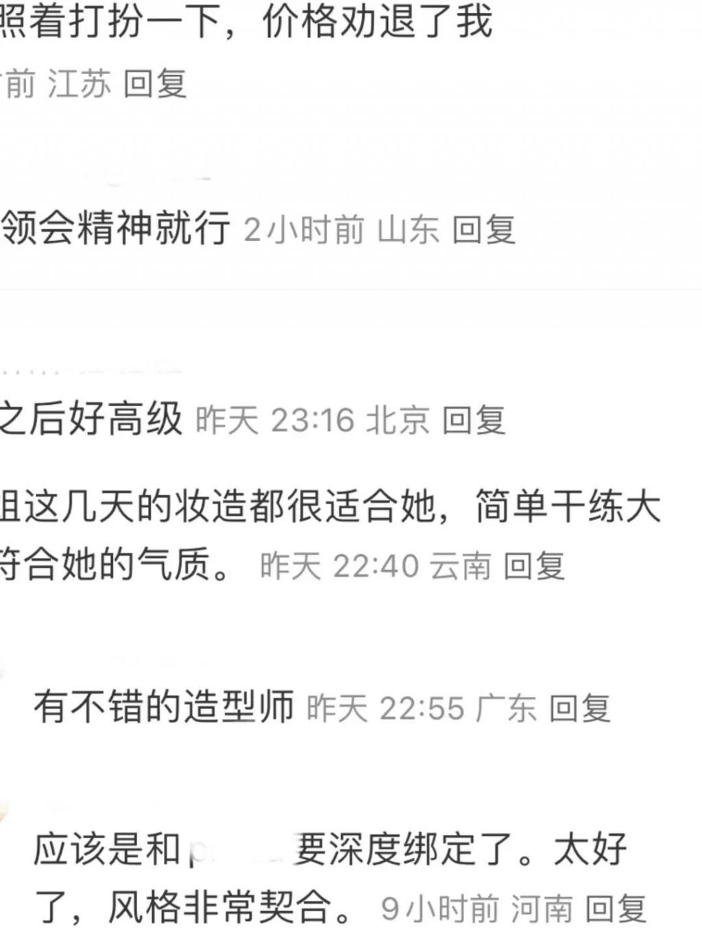 对于贾玲的这身穿搭,一众网友都被种草,可是一看到价格,立刻 " 退避三舍 "。尽管多数人难以消受贾玲的同款穿搭,不过却纷纷点赞贾玲的整体造型,高呼如今的贾玲造型很高级,尤其最近的几款中性风,贾玲可以轻松驾驭,毫不逊色同场的好姐妹张小斐。