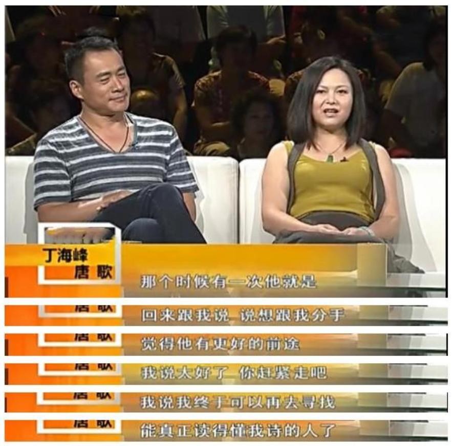 很多年后,在一次公开采访中,丁海峰提及一件小事,就是在他刚刚和唐歌谈恋爱时,他随口说了一句让唐歌替他洗衣服,唐歌就真的去了。