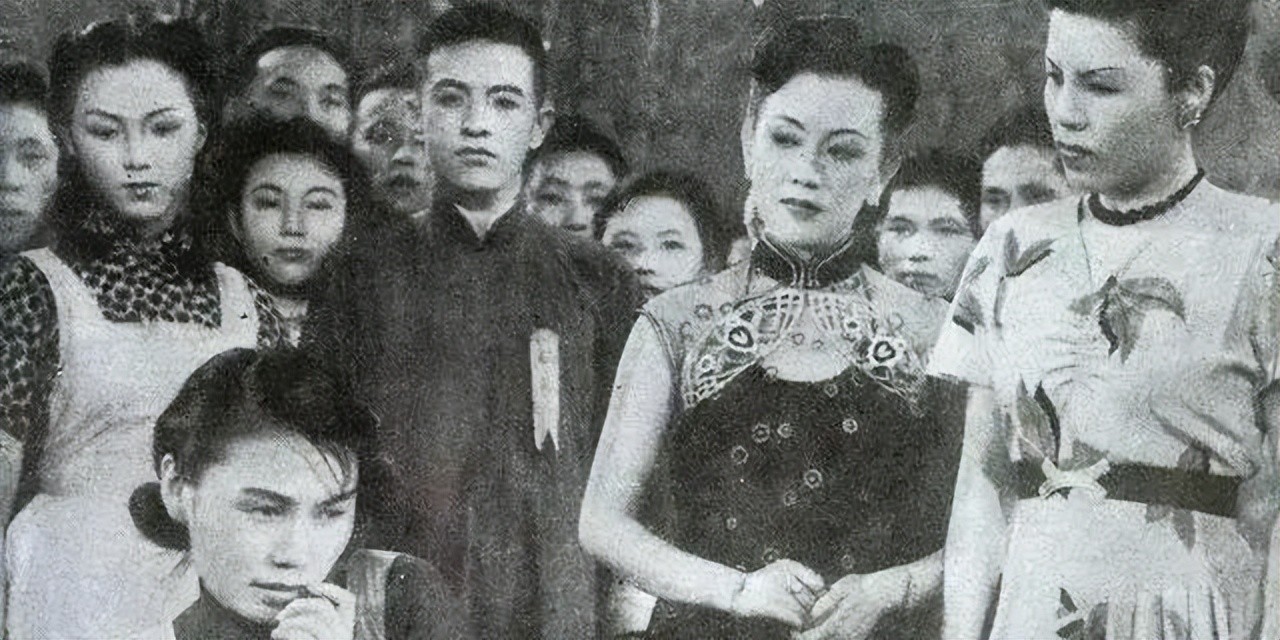 左下:白杨,中间深色旗袍的是上官云珠,最右边的是舒绣文