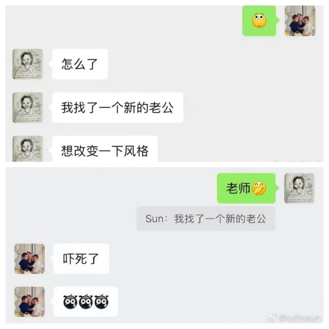她的原话是这样的:怎么了?我找了一个新的老公,想改变一下风格。