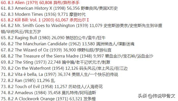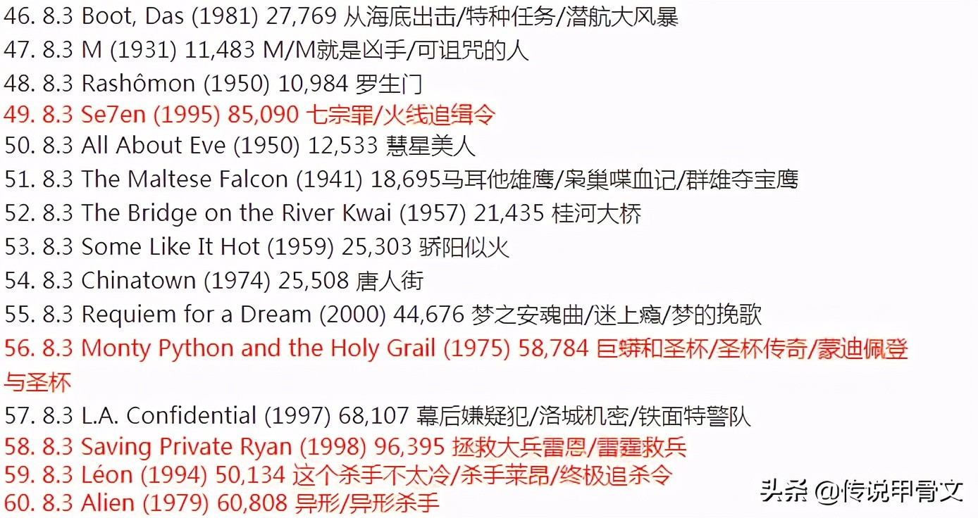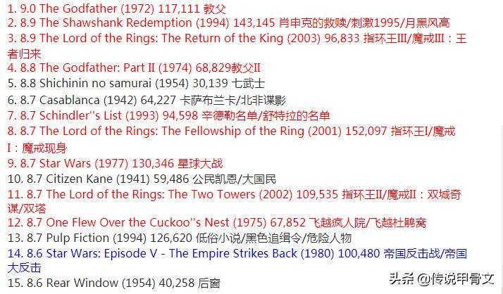 本排名是由《帝国》杂志的10,000名读者、150位好莱坞指标人物以及50位著名电影评论家共同投票表决选出。总的来说,还是具有一定的权威性的一份排名,但是说好的全球电影排名,几乎全是欧美的电影入选,仅有日本小津安二郎的《东京物语》排名第67,韩国的朴赞郁的《老男孩》排名第64入选,国产电影尚无一部入选,这傲慢与偏见不言而喻。