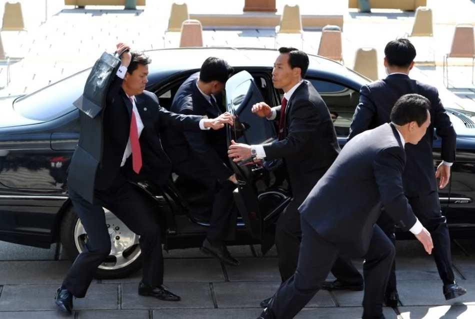 韩国总统保镖演练掩护要人撤退