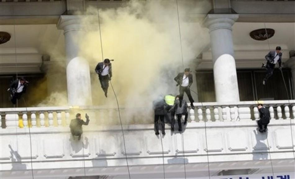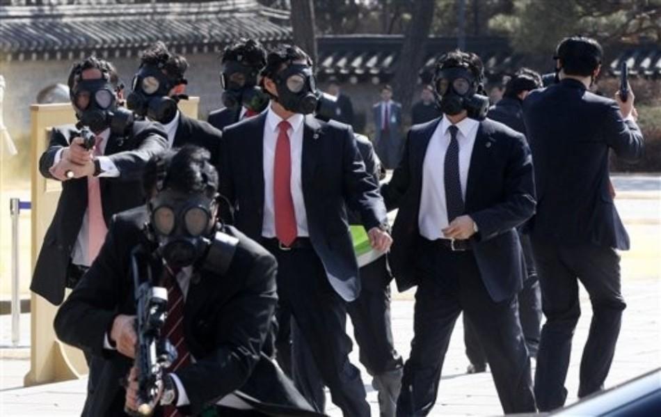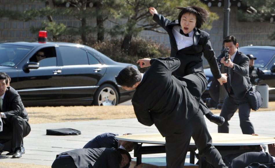 韩国总统保镖组演练保护要人