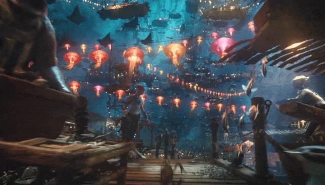 电影远不仅停留深邃幽蓝的海底,镜头跟随海王的视角穿越了一个色彩瑰丽甚至略带一丝诡钓感的世界,每场交战几乎爆发在眼前,都是畅快淋漓的视觉暴击。