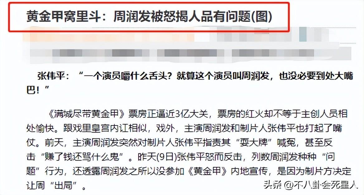 《满城尽带黄金甲》的制片人就曾怒喷周润发,称他在拍摄期间耍大牌,非要剧组给他在国际饭店开7间房,休息、化妆、讲戏、吃饭都要有不同的房间。