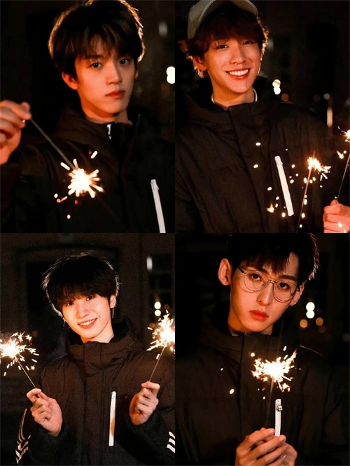 但是四位帅哥的颜值没法黑呀,尤其一组烟花氛围感大片更是俘获了一大片芳心。