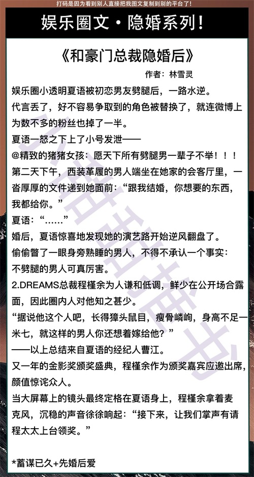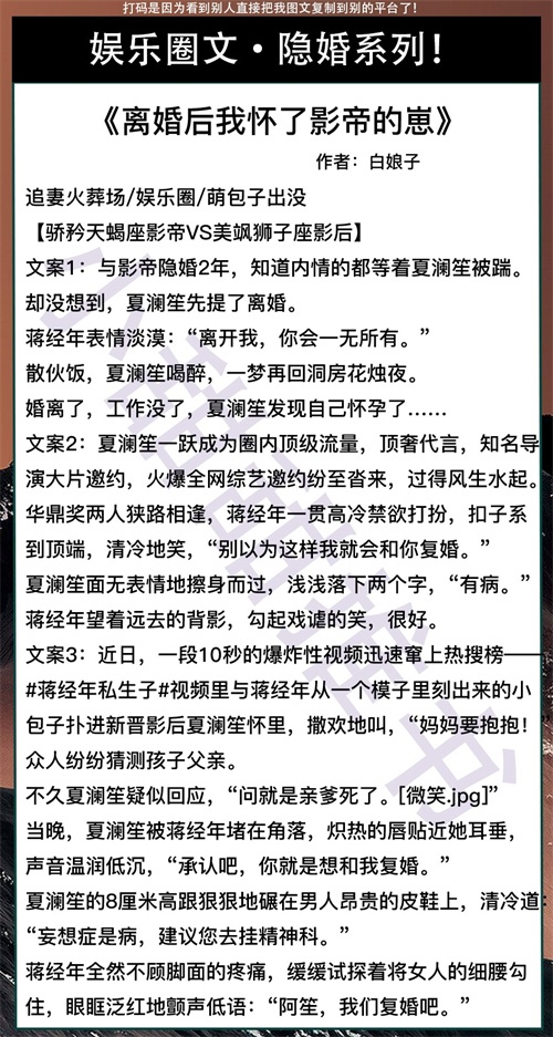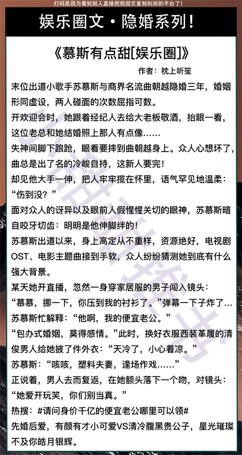这期给大家推荐的是7本娱乐圈宠文,隐婚系列!