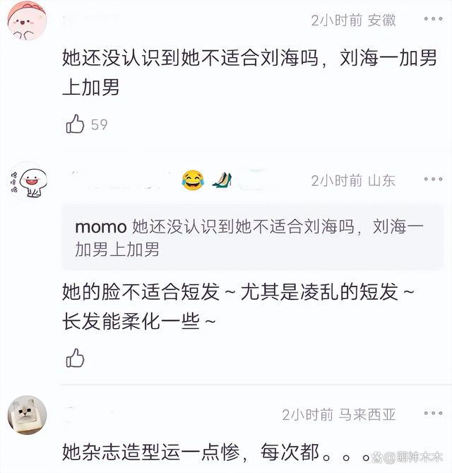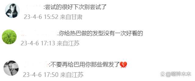 包括热巴部分粉丝,也都不喜欢这个短发造型,还跑到发型师微博评论区抗议,让他下次不要再折腾热巴的头发了,做出来的发型没有一次是好看的,降低了热巴的颜值。