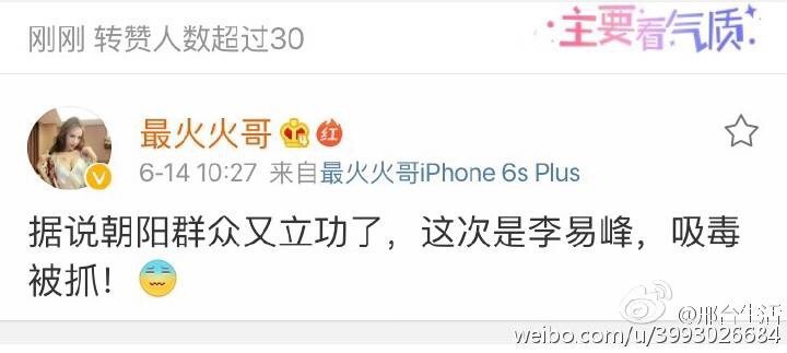 最近朝阳群众又立一功,有网友爆料称L姓艺人吸毒被抓,而且是当红小鲜肉,乖乖,这就托大了,当红,小鲜肉,姓L,这大家立马想到的就是李易峰啊!