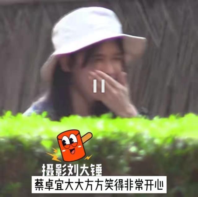 蔡卓宜跟王大陆聊天笑得忍不住连连捂嘴,两只眼睛更是眯成了一条缝。