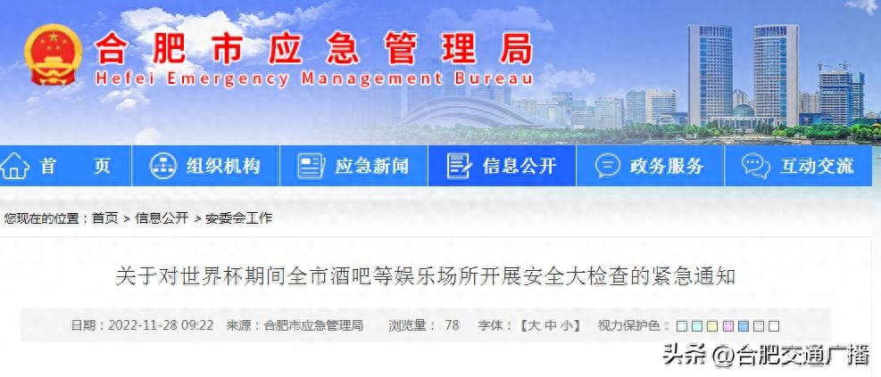 近日,合肥市安委办下发紧急通知,即日起至世界杯结束,切实加强世界杯期间全市酒吧等娱乐场所安全隐患排查整改。