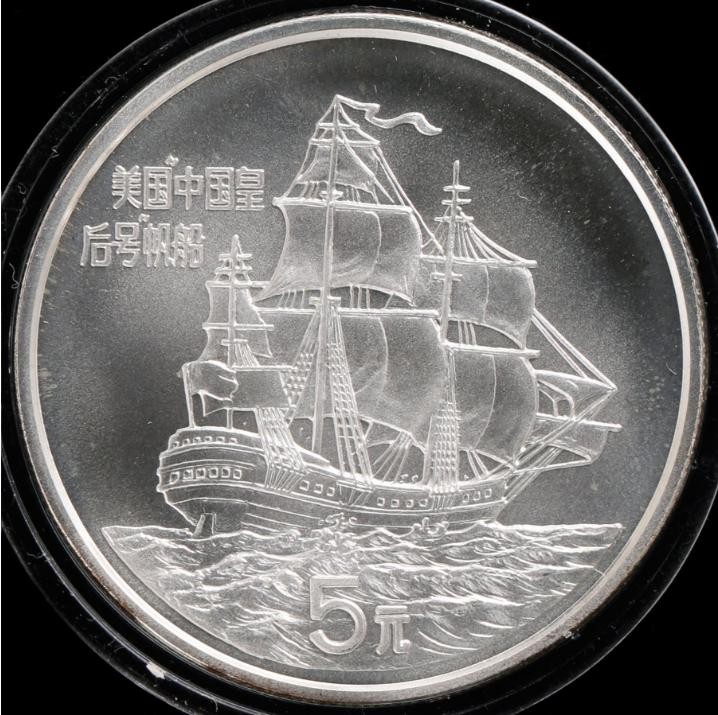 我国于1986年发行了一枚面值5元的"美国'中国皇后号'帆船纪念银币"