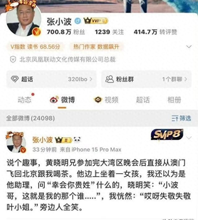 凤凰联动文化总裁张小波爆料,黄晓明不好意思介绍新女友叶柯身份