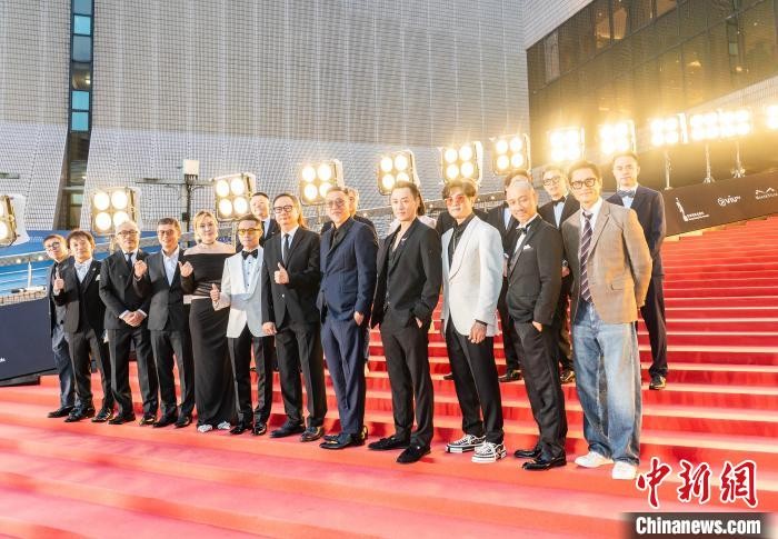 4月27日,第43届香港电影金像奖颁奖典礼在香港文化中心举行。图为《九龙城寨之围城》剧组成员亮相红毯。 中新社记者 侯宇 摄