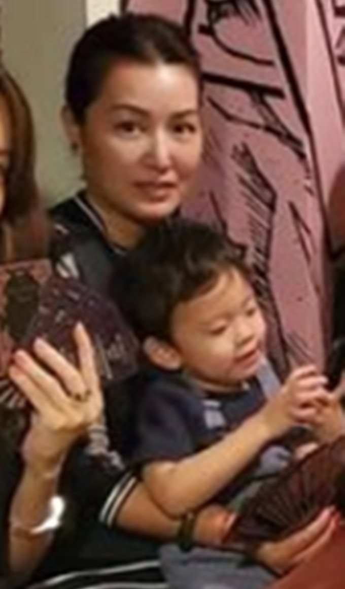 合影时,她怀抱着一个小男孩,男孩眼睛又大又圆,脸蛋胖嘟嘟,可爱极了。