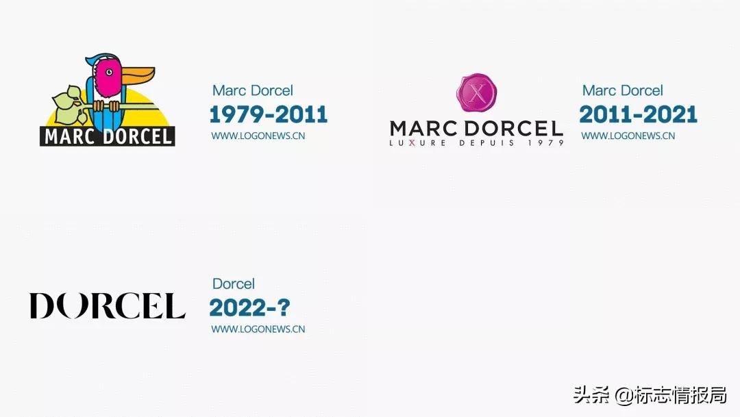 新LOGO不再使用紫红色的X火漆图案和品牌Slogan 「LUXURE DEPUIS 1979」,而是将名称「Marc Dorcel」简化成「Dorcel」后采用了类似于时尚品牌最爱的黑色衬线字体。