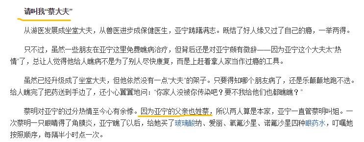 其实另一个原因不只是因为热情,而是因为亚宁的父亲也姓蔡。