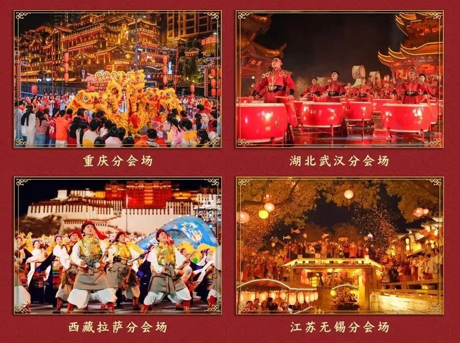 重庆分会场带来巴渝特色鲜明的歌舞、年俗表演,热辣滚烫、时尚新潮;武汉分会场融入新派戏曲、杂技、楚乐和经典影视IP,昂扬姿态尽显“英雄城市,还看今朝”;无锡分会场将传统曲调、情景演绎有机串联,历史文脉与现代文明交相辉映,“太湖明珠”更加璀璨;拉萨分会场原汁原味的民族风情表演和精心设置的特别环节,展现各族群众如石榴籽般紧紧相依、守望相助的动人情谊,传递出齐心协力共建美丽新家园的坚定信心。
