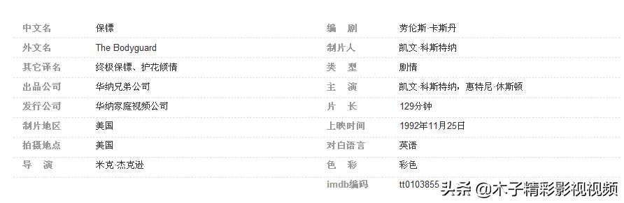 《保镖》是由米克·杰克逊执导,凯文·科斯特纳与惠特尼·休斯顿主演的剧情片。该片于1992年11月25日在美国上映。该片讲述了职业保镖弗兰克为了保护黑人女歌星梅伦的安全,而与幕后杀手进行一次次较量的故事。