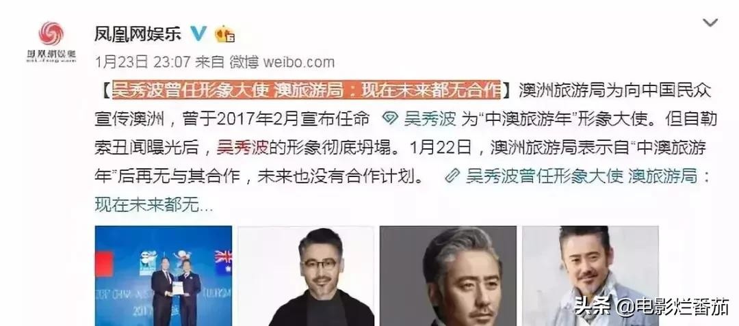 2017年2月,吴秀波曾被任命为“中澳旅游年”的形象大使,向中国民众宣传澳洲。但勒索丑闻曝光后,吴秀波的形象大不如前。