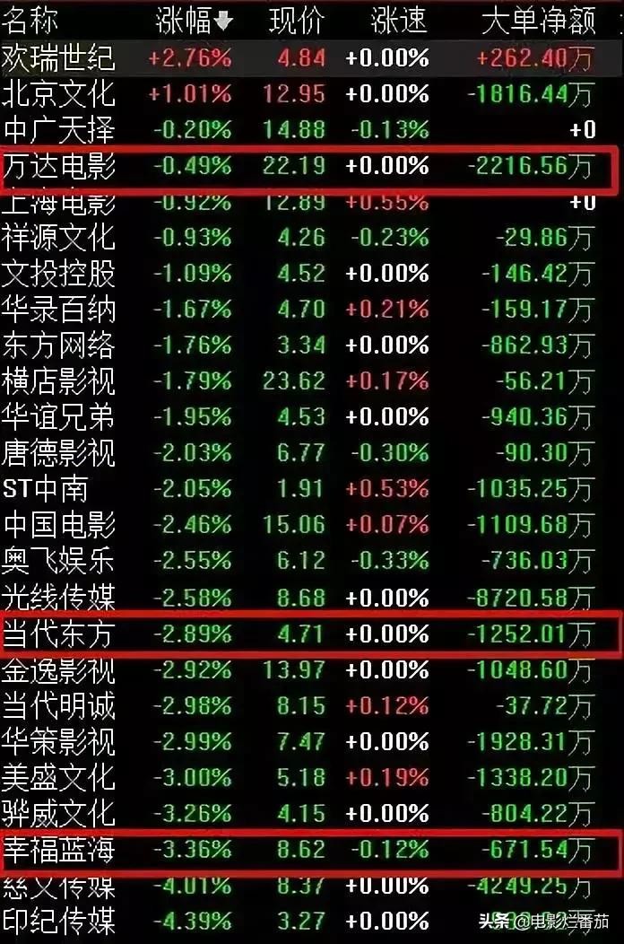 截至2019年1月22日收盘,它们在影视板块上几乎一片惨绿。