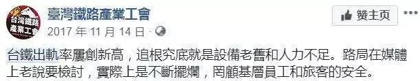 参考视频还注意到,去年普悠玛号发生出轨事故后,台湾铁路产业工会曾在脸书发文痛斥台当局:台铁出轨率屡创新高,追根究底就是设备老旧和人力不足。台当局铁路主管部门在媒体上老说要检讨,“实际上是不断摆烂,罔顾基层员工和旅客的安全”。