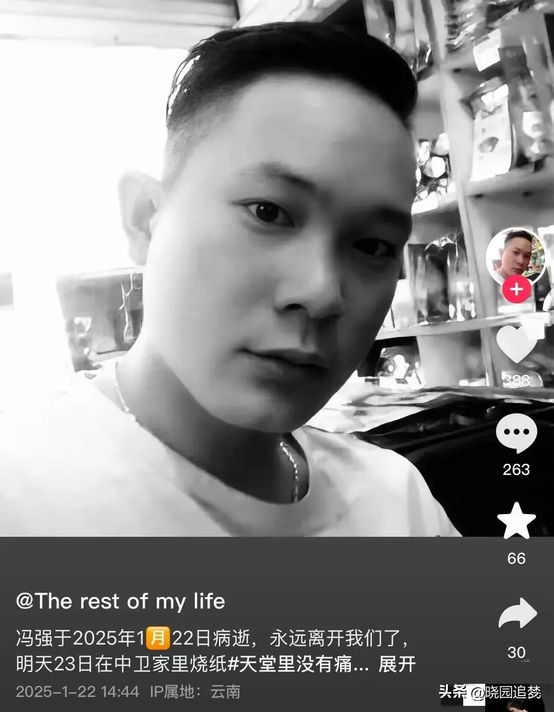 在社交媒体的流量池里,每天都有成千上万的账号更新着平凡而简单的日常。然而,1月22日,冯强的账户却发布了一则让所有关注他的人都为之一震的消息——他去世了。