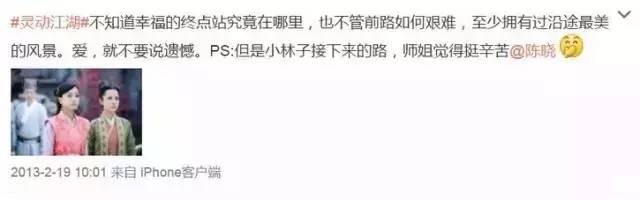这个女孩在《黛玉传》里演过一个小角色,不出名。随着陈晓的走红,二人分道扬镳!微博互动。不转发,只留言,那时候陈只是个小咖,还能看到一点真实的成分。感觉他好躁狂,好冲动,甜言蜜语一车!