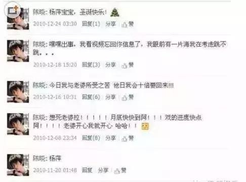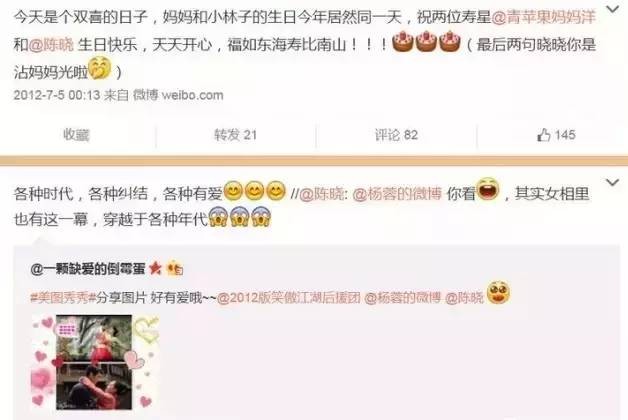 陈晓互动。今年年初二人参加充电旅行,是最后的交集。杨蓉再没在微博上提到陈晓。每年陈晓生日她都祝福,除了今年。