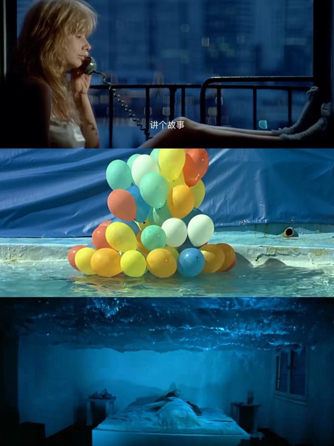 最后,影片中的大部分场景都弥漫着蓝色。泳池、天空、大海等都呈现出不同深浅的蓝色,将蓝色发挥到了极致。