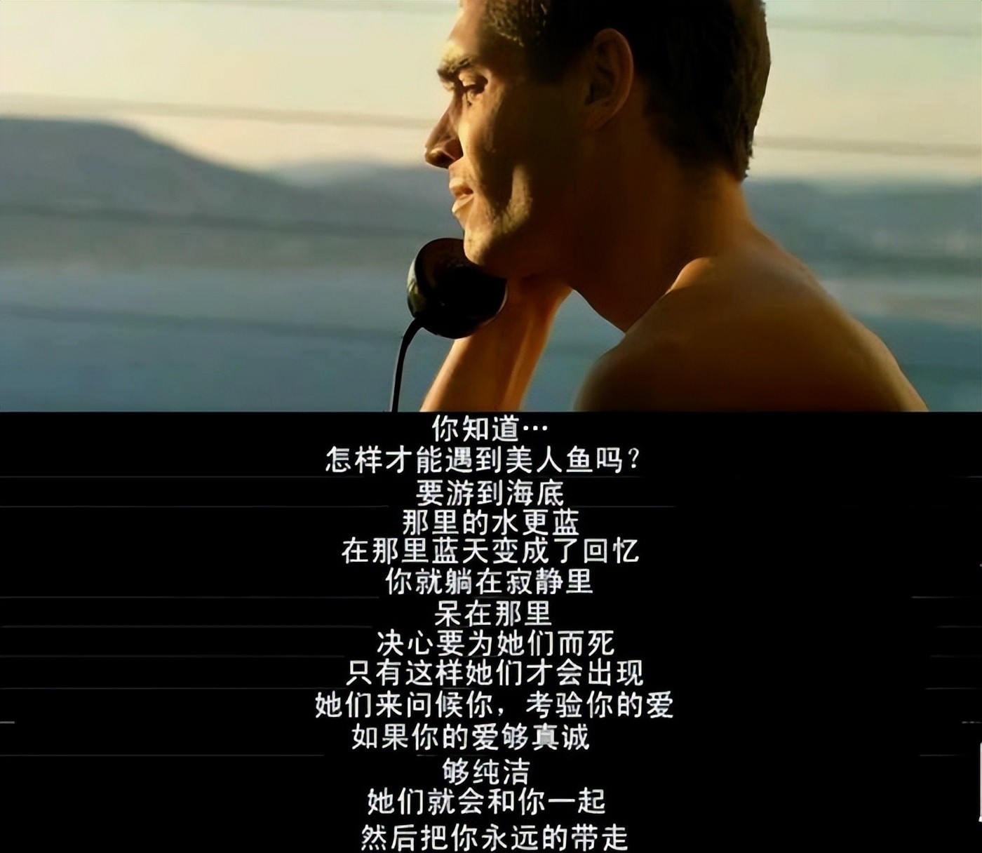 这个字幕或许代表了导演吕克·贝松与影片主人公雅克之间的不同之处,也许正是吕克·贝松从海下世界来到海上世界的最终原因。