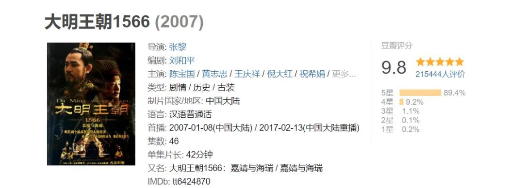 作为评分高达9.8的剧,《大明王朝1566》凭借自身优秀的故事和精彩的剧情获得了大家的认可。