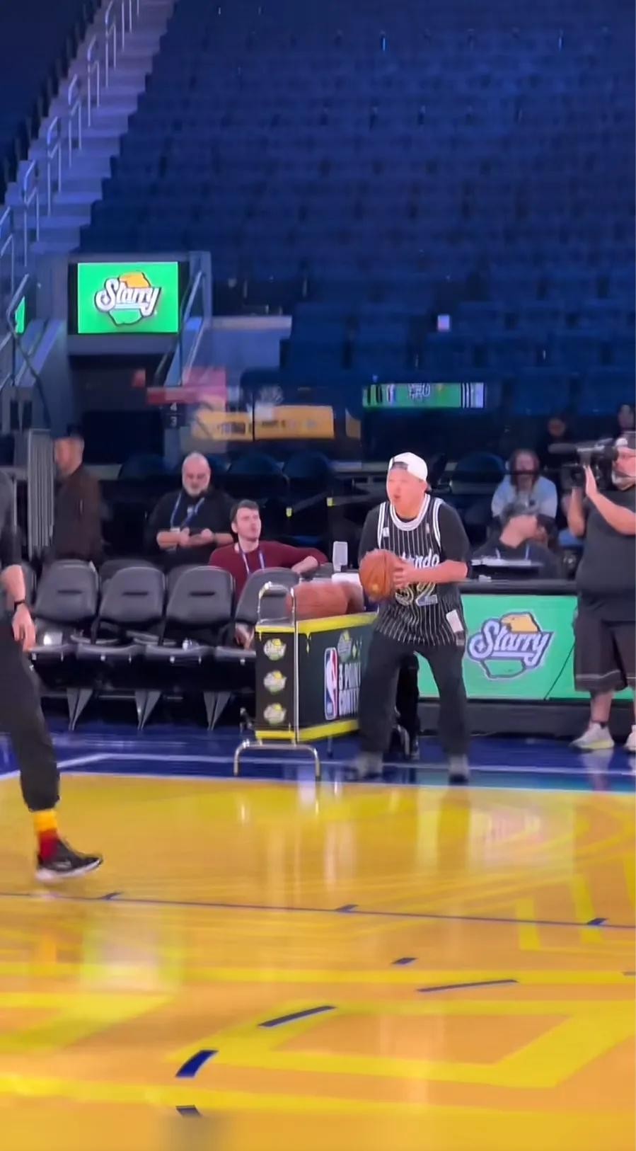 在三分球大赛体验环节,阎鹤祥的表现还不错。看他投篮的姿势和动作,就能知道他以前肯定经常打篮球,是有一定篮球基础的。不过,从得分情况来看,他应该有好长一段时间没摸过篮球了。11个球只进了1个,这样的成绩虽然不太理想,但也正常。毕竟大家都知道,术业有专攻,专业的事还得交给专业的人来做,跨界可没那么容易,也没那么轻松。