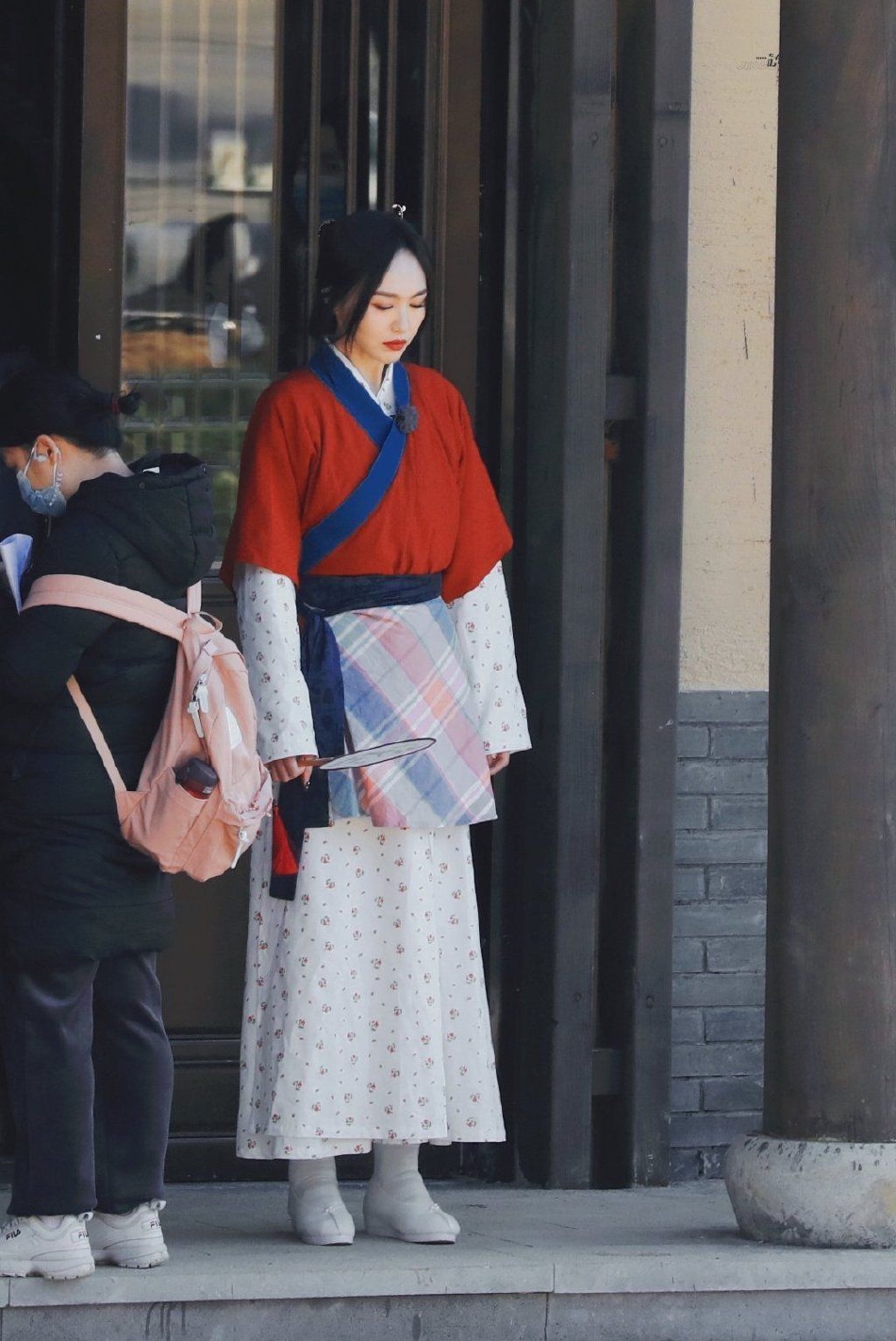 12月24日,唐嫣《我们的客栈》最新路透曝光,唐嫣cos《武林外传》佟湘玉,神似“佟掌柜”,边走路边扇扇子,心情好。