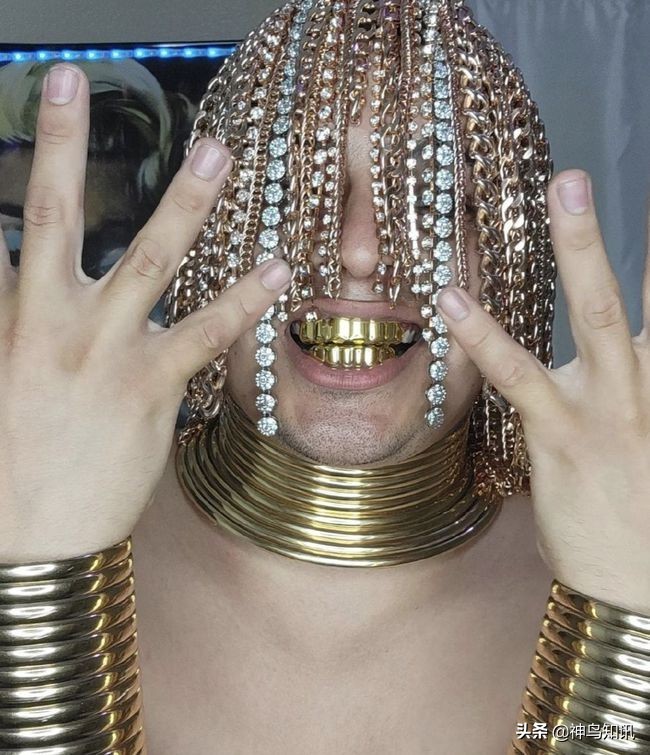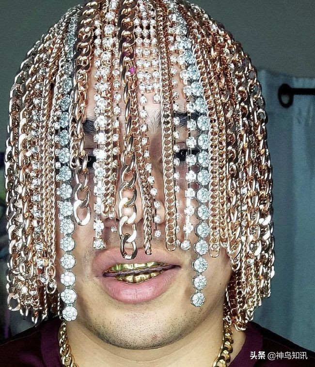 真“金发”!墨西哥一说唱歌手钻头骨移植数十条金链作“秀发”