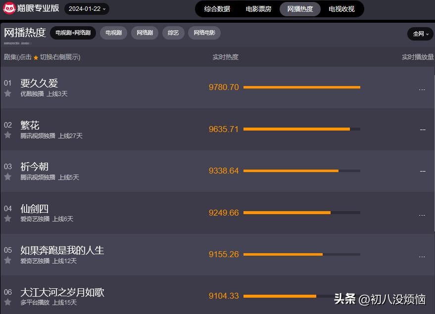 大盘点:2023年全网"热播电视剧"最高热度排行榜前20名,你看过几部