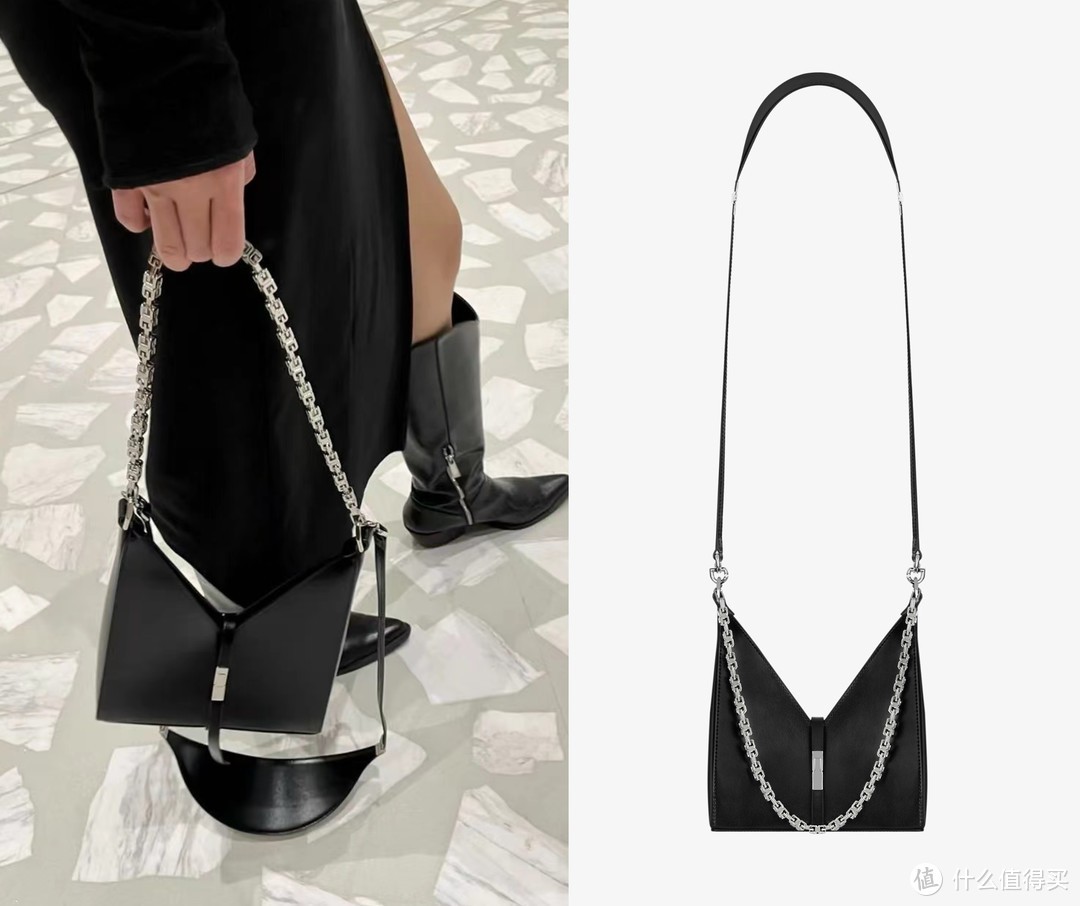 纪梵希的包通常都带有酷酷的气质,李庚希背了一只纪梵希新款cut out手袋,包身开口处V形剪裁,既简洁又有设计感,背在街上不容易撞包。