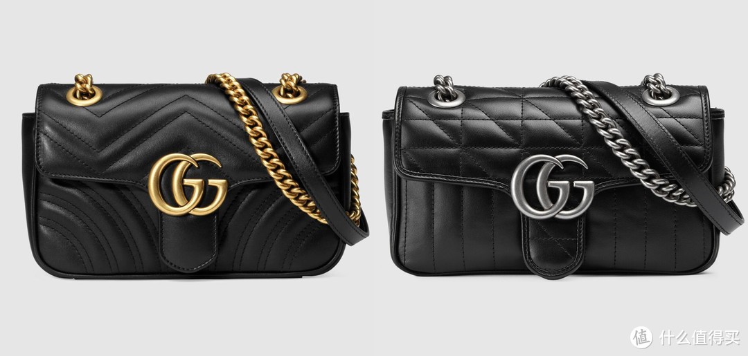 经典波浪纹绗缝那款(下图左)比较常打折,这只新款沿用之前的包型,采用竖版和斜纹绗缝(下图右),大家对比一下。
