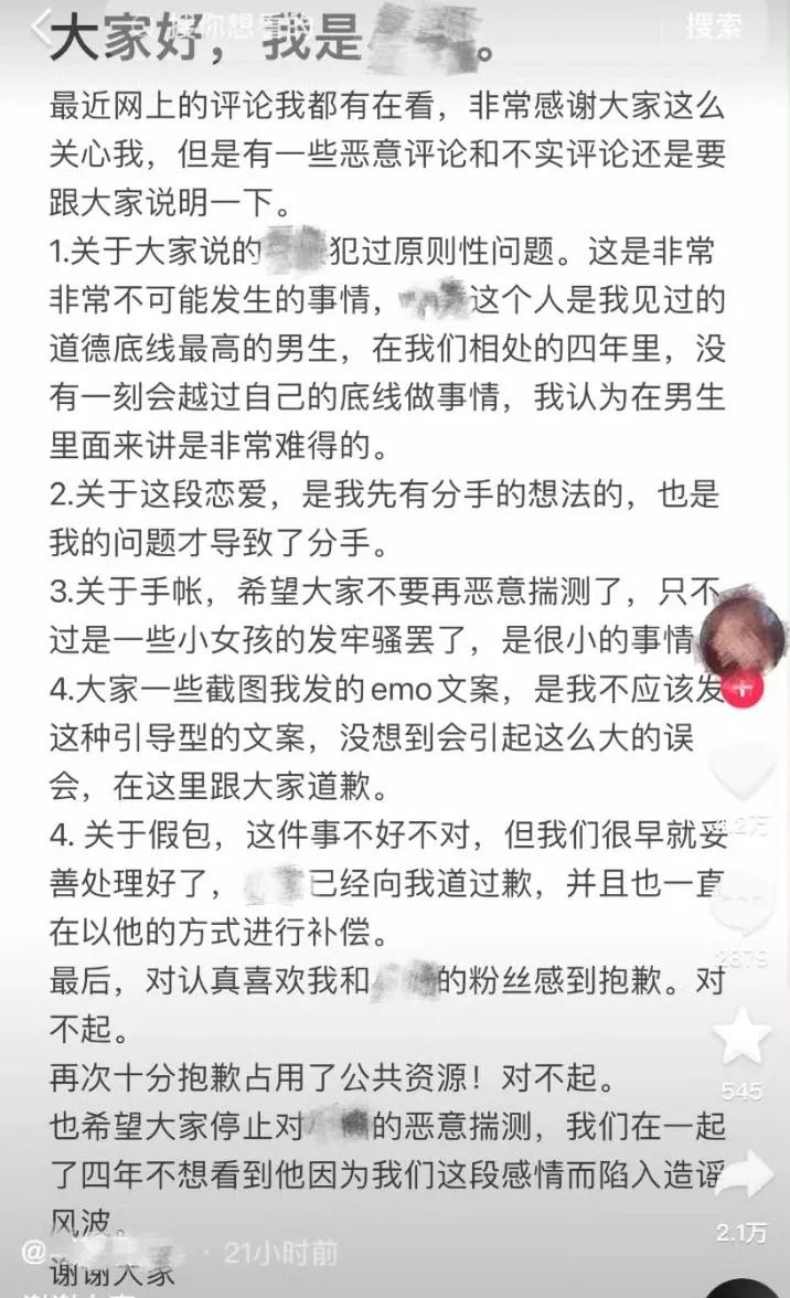 谢欣桐的粉丝们可不干了,他们觉得肯定是小黄出轨了。有粉丝甚至扒出小黄送给谢欣桐的包是假货,这下可把小黄的名声搞臭了。但是谢欣桐后来出来澄清,说分手是因为自己的问题,还特意为小黄澄清了出轨的传闻。这一来二去的,搞得大家都有点摸不着头脑了。