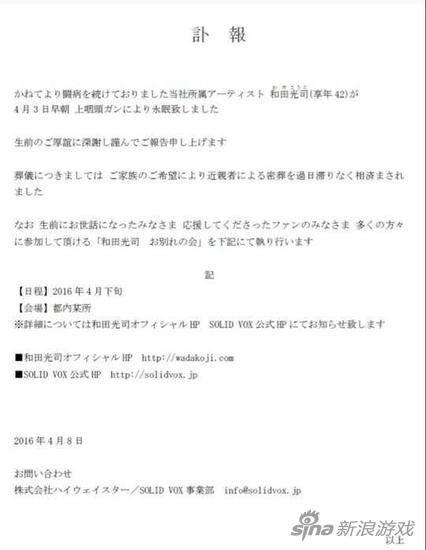 据日本媒体报道,《数码宝贝大冒险》Butterfly主唱和田光司因咽喉淋巴癌于4月3日早晨逝世,年仅42岁。和田光司2003年患上咽喉淋巴腺恶性肿瘤,长期与病魔抗争后曾于2013年短暂复出。