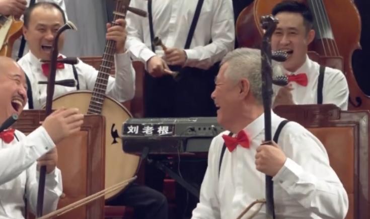 赵本山的弟子们对他很是敬重,一曲完毕,大家大笑着气氛一派祥和,其乐融融。