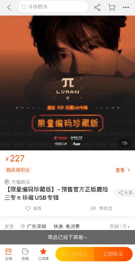 鹿晗第三张个人实体专辑《π》上线秒罄,不愧是初代顶流