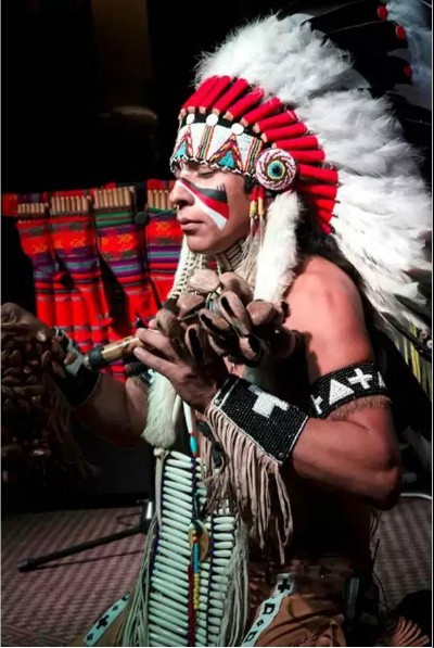 亚历桑德罗,他是一位杰出的演奏家,用音乐讲述印第安文化,脸上涂着油彩,带着鹰羽冠头饰,手臂上缠着象征图腾的绑带,将人们的思绪一下子带回了原始的状态,闭眼,安静的听着他的演奏,仿佛回到了最平静的时光。