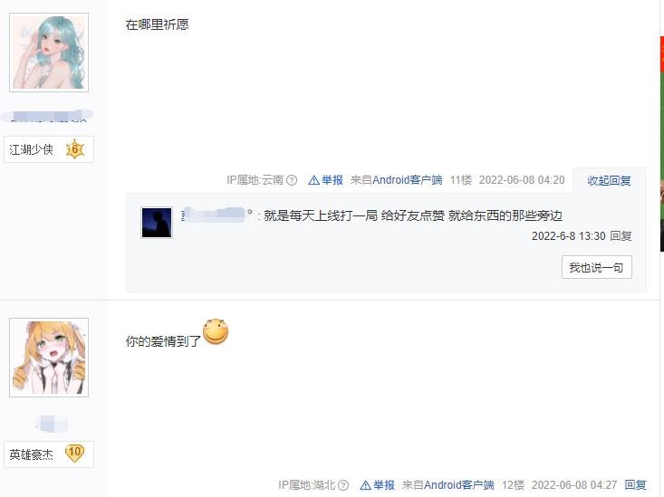 而看到这位女玩家的遭遇后,贴吧里的大佬们除了哈哈哈以外,也开始参与进来。在这个帖子里就有萌新在问,到哪里祈愿,看来大家都看到了祈愿树的效果了。可以预见的是,在接下来的几天活动里,相信会有更多的痴男怨女出现在这个活动的祈愿之中,而这个祈愿树恐怕在接下来要转职成为“爱情树”了。