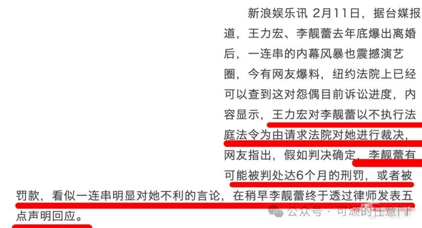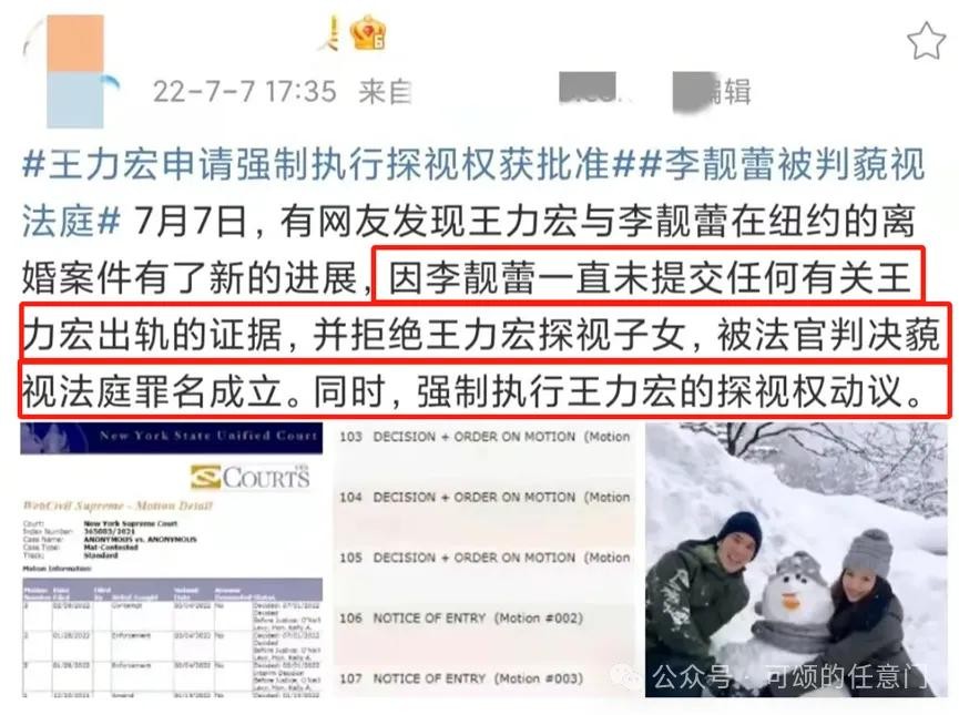 法院宣判李靓蕾藐视法庭,并强制执行王力宏的探视权。