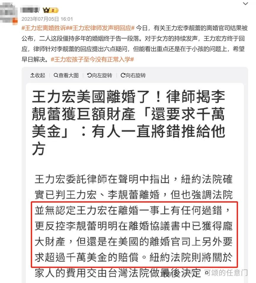 去年,王力宏离婚胜诉,舆论开始出现反转。