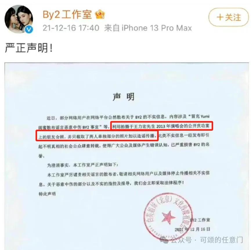 12月16日,王力宏通过经纪人方否认了网络谣言,BY2工作室也发文称所谓“BY2闺蜜”言论为恶意中伤。