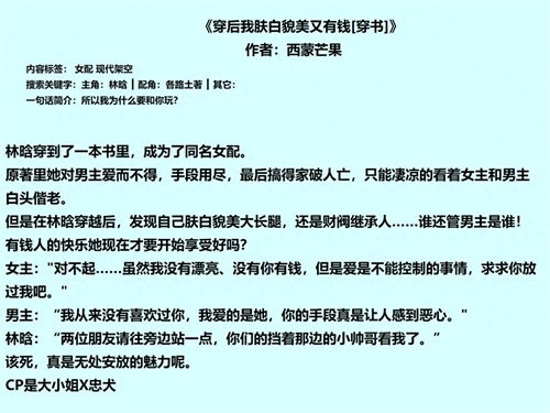 《穿后我肤白貌美又有钱》穿成草根灰姑娘和霸总文里的白富美