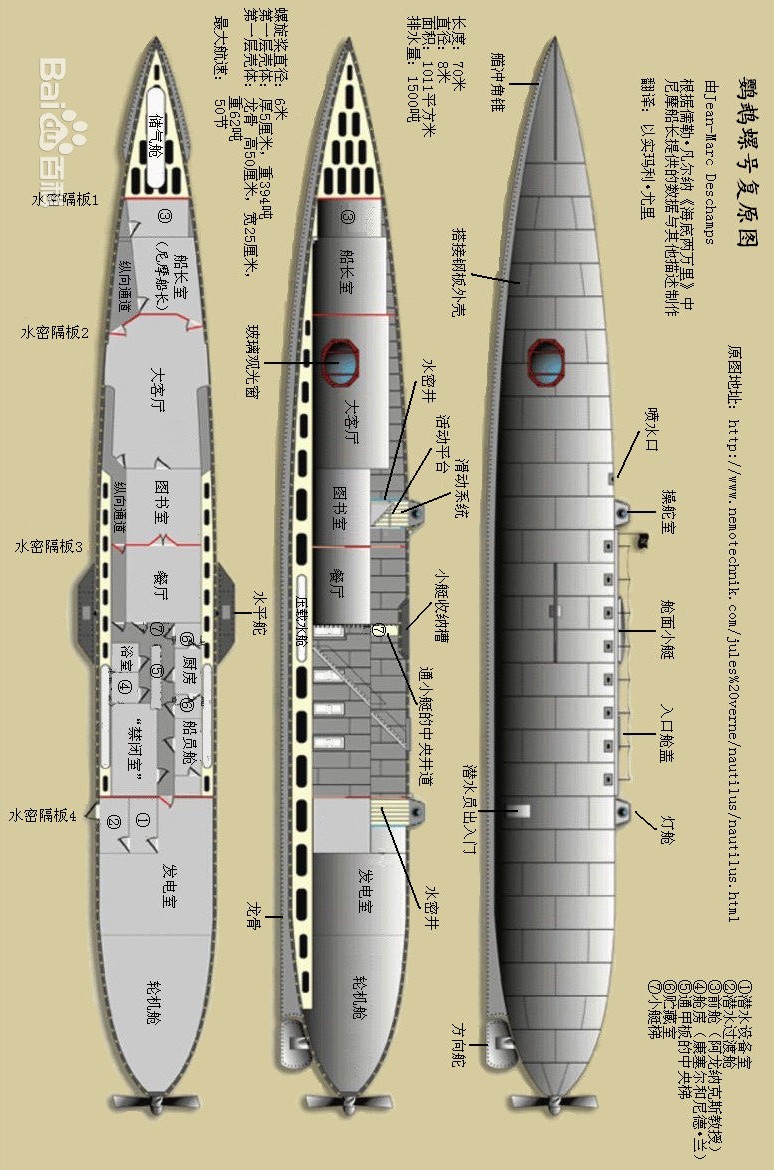 19世纪60年代,铁壳蒸汽船 都没普及,潜艇、电力仍在试验阶段。凡尔纳却设想出了钢筋铁壳、全电力推进的潜艇,相当超前。虽说现代核潜艇的续航力、操控水平早已超越鹦鹉螺号,但小说里的某些指标,至今也没实现,鹦鹉螺号能以50节 (92.5公里/小时)的高速疾驰,超过迄今所有潜艇;能潜入万米之下的海沟,也只有极少数专门设计的深潜器能做到。