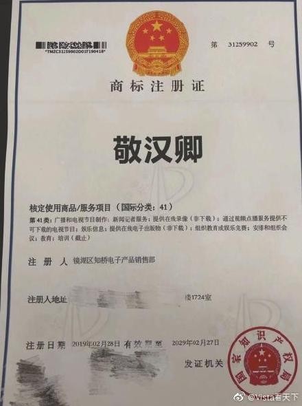 【网红名字频频被抢注 有人想赎回被开价35万】近日,网红“敬汉卿”被恶意抢注商标的事件引发舆论关注,记者在“中国商标网”上查询到,“敬汉卿”这个名字已被7家公司申请注册为商标,时间最早可追溯到2018年5月。游戏博主“落星解说”运营账号已经5年,拥有300万粉丝,也收到自己账号已被其注册商标的信息,正是来自持有“敬汉卿”商标的那家公司。实际上,这家公司成立不足两年时间里,已经注册过103个商标,大部分都是网红博主账号。在敬汉卿建的一个微信群里,40多个群成员都有同样的遭遇,涉及的抢注公司也不止一家。一位不愿透露姓名的博主说,自己也曾被“要挟”支付35万元作为商标转让费。有律师表示,目前市面上有公司专门寻找热门IP,并抢注商标。抢注成功后,这些公司就会向被抢注者发起“维权”,最终目的是从中获益。(@华西都市报 )